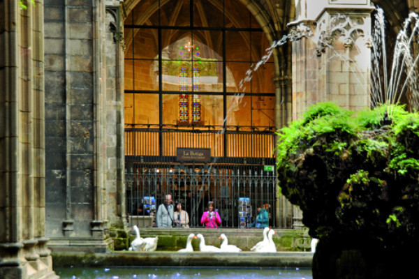 Incluso pasear por sus plazas tiene anécdotas tétricas, ya que debajo se encuentran los antiguos cementerios parroquiales.Empezarás la visita al lado de la Catedral de Barcelona, construida a partir de diferentes estilos artísticos, donde visitaréis su claustro.